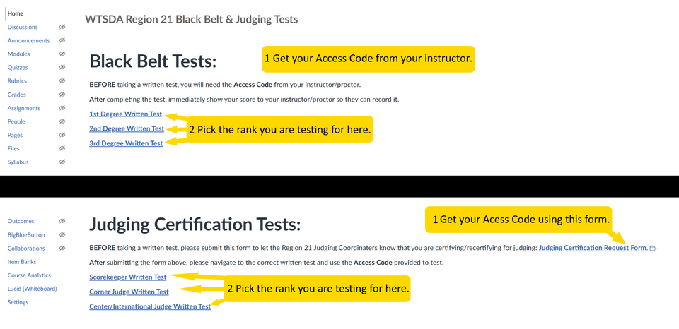 The written tests for Region 21 are now online in the CANVAS system. It is free to use, and you may even have an account already from school. If not, you can sign up in about 1 minute, and the entire test prep process should only take about 5 minutes. Follow the steps below to enroll and then do a simple practice test to make sure you are ready for the proctored exam at your dojang.